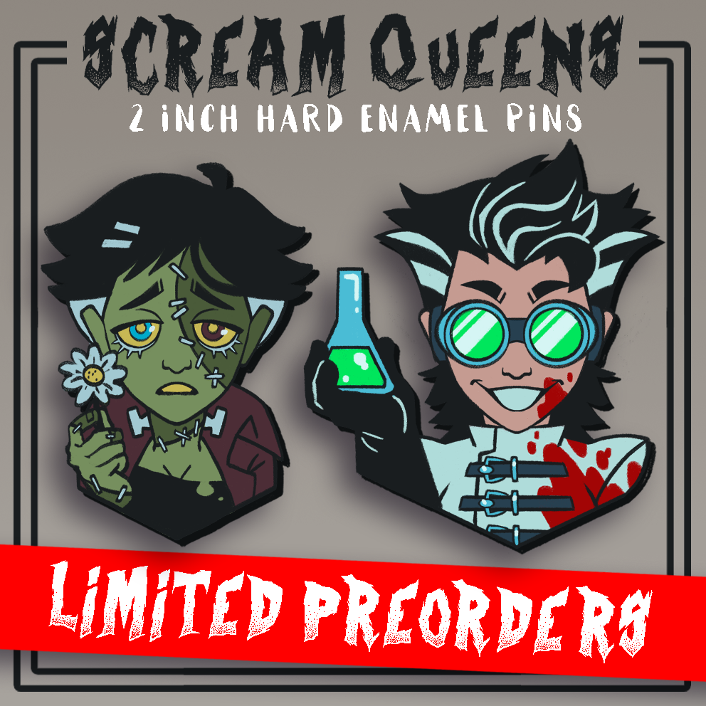 Did you miss out on the positively petrifying preorders for my Scream Queens pins? Wish we'd been able to hit the superbly scary stretch goals? FEAR NOT! Limited preorders for the MAD SCIENTIST and FRANKENSTEIN pins are now available! I'll be offering limited quantities of both A and B grades.